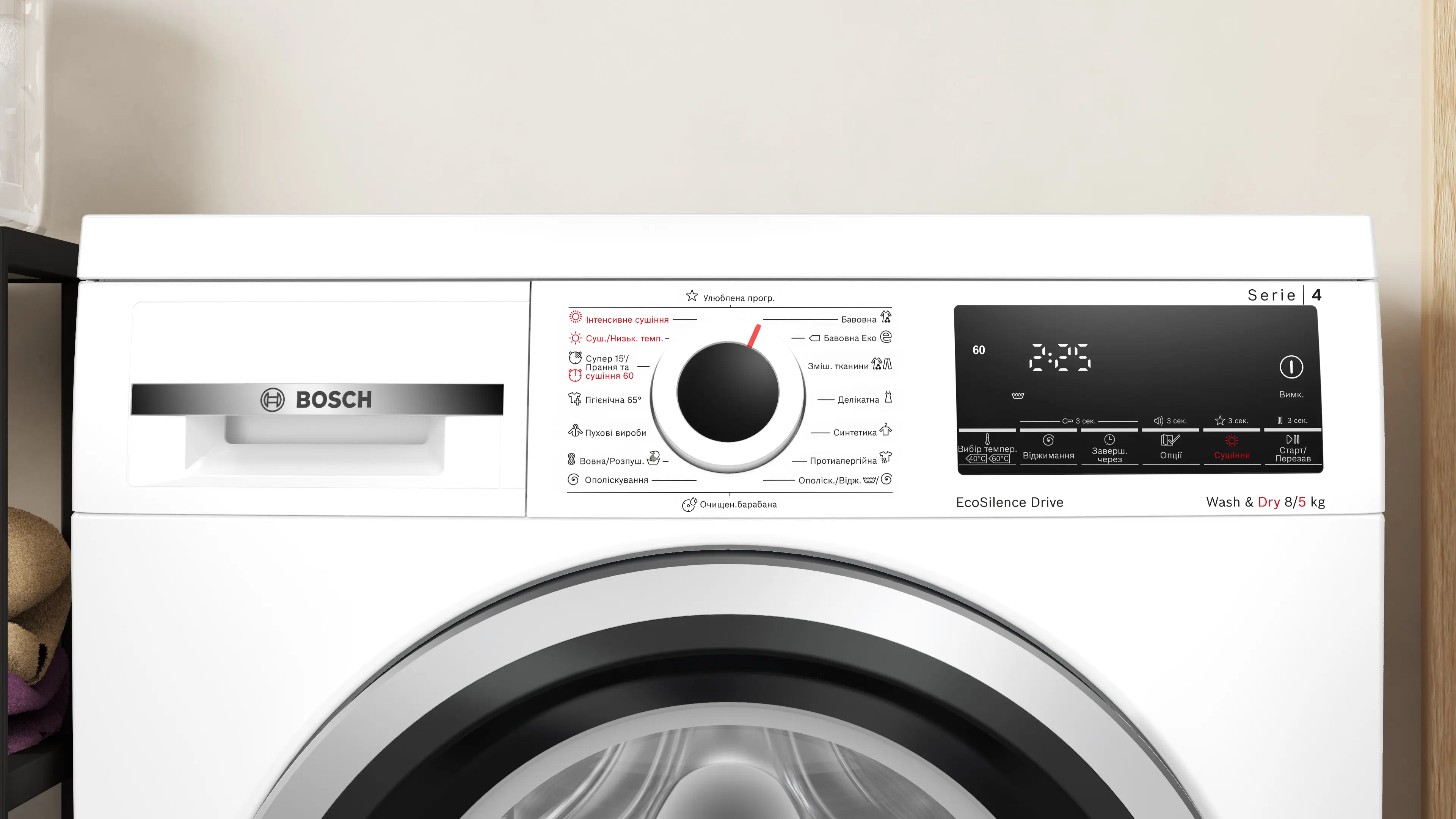 Максимальная загрузка-стирка: 8 кг, максимальная загрузка-сушка 5 кг