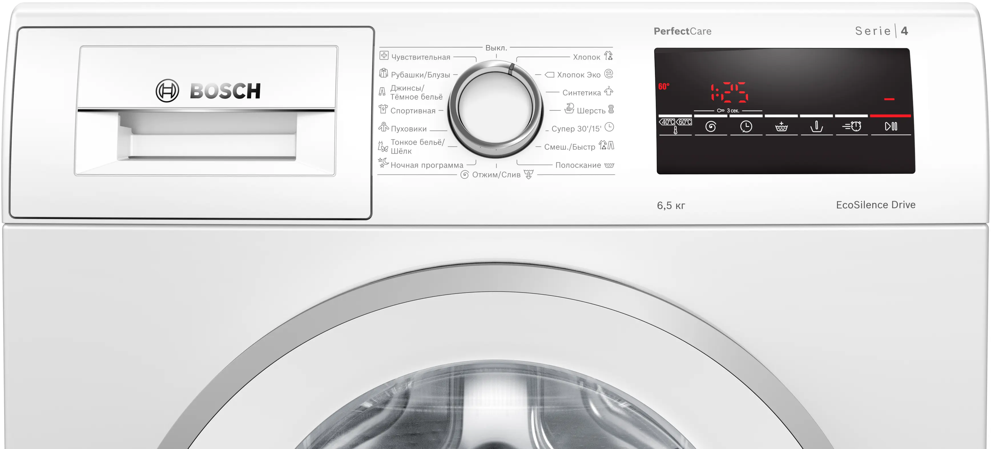 Программы стирки: Хлопок, Хлопок Эко, Синтетика, Шерсть, Супер 30/15, Смеш/Быстр., Ночная программа, Тонкое бельё/Шёлк, Пуховики, Спортивная, Джинсы/Тёмное бельё, Рубашки/Блузы, Чувствительная, Полоскание, Отжим/Слив