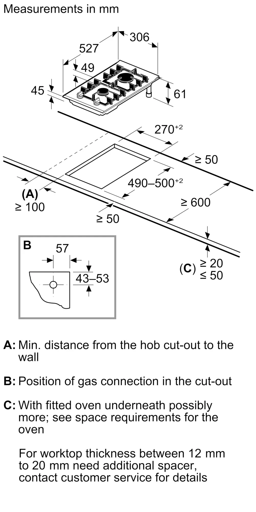 Необходимый размер ниши для установки (ВхШхД мм): 45 x 270 x (490 - 500)