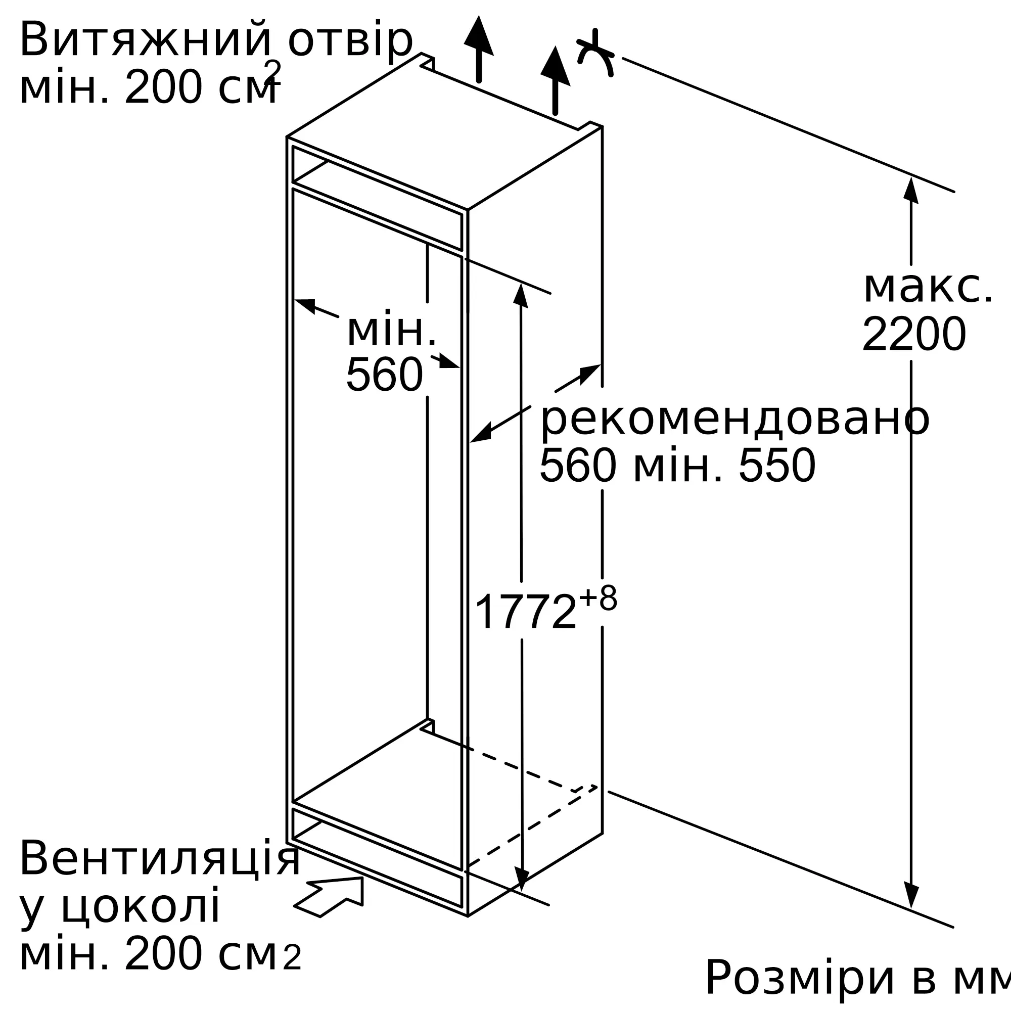 Розміри ніші для вбудовування (ВхШхГ): 177.5x56x55 см