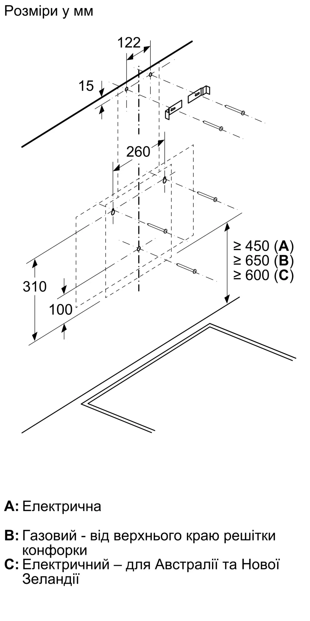 Для роботи витяжки в режимі рециркуляції потрібен комплект (додатковий аксесуар) для даного режиму