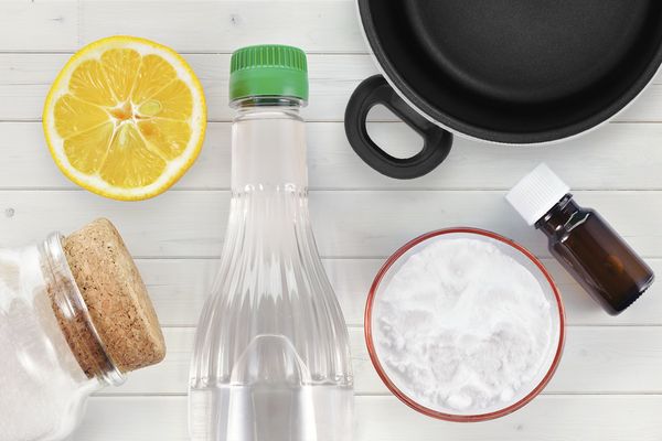 Розчин, приготований зі 100 мл білого оцту, 500 мл води, кількох крапель ефірної олії лимона або лаванди та 1 столової ложки харчової соди, також корисний для очищення зовнішніх частин пральної машини, включаючи скло ілюмінатора.